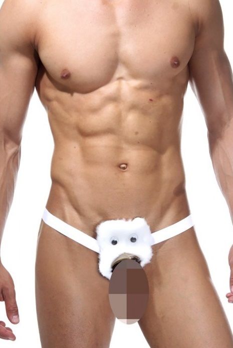 Игровые трусы-стринги для мужчин белого цвета с низкой посадкой, с цыпленком. Трусы на широкой резинке, хорошо тянутся.
